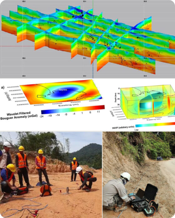 Survey using non-invasive methods to detect geological structures, groundwater, minerals, and voids without any digging.